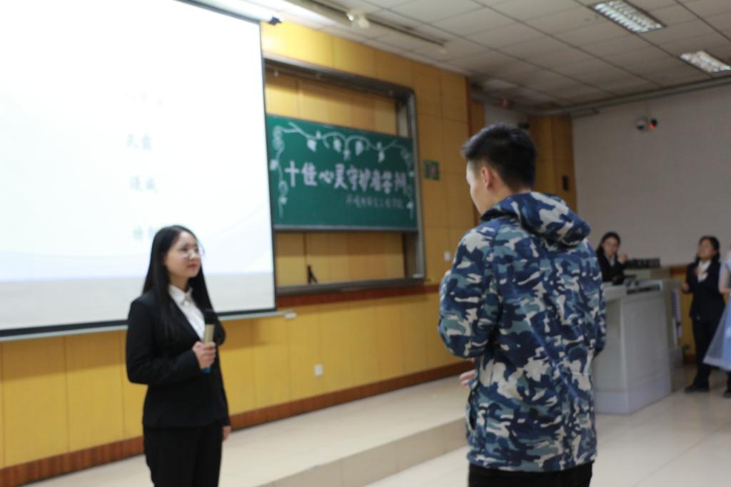 活动伊始,在组织人员的管理下,观众安静有序地进行签到。在主持人介绍完本次活动出席评委后,选手开始总结他们过去一年的收获,讲述了他初次来到大学时的迷茫,不断努力过后的成功并以此激励大家不负青春韶华,不断提升自我。小游戏大大调动了观众的热情,在浓郁的气氛下,紧张激烈的下半场答辩开始了,选手有声有色的语言方式赢得观众热烈的掌声。答辩结束评选出十佳心理联络员,并由学生科谷磊磊老师为他们颁奖,最后,老师上台总结发言,老师对大家提出表扬并给予鼓励,希望大家再接再厉,给自己的大学交一个完美的答卷。活动在大家欢声笑语的合照中圆满结束。