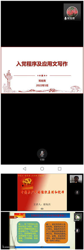 副院长曹雄分别从《入党的程序及应用文写作》、《中国共产党的组织原则和纪律》、《党员权利与义务》、《党的指导思想》、《品鉴领袖诗词,感悟初心使命》、《国民经济及社会发展十四五规划及人才战略》6个方面对全体学员进行了授课辅导,教育引导大学生入党积极分子坚持马克思主义指导地位,坚持中国共产党的全面领导,坚定中国特色社会主义理想信念,践行党的宗旨,自觉做共产主义远大理想和中国特色社会主义共同理想的坚定信仰者和忠实实践者,为推动中华民族伟大复兴贡献力量。