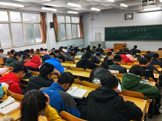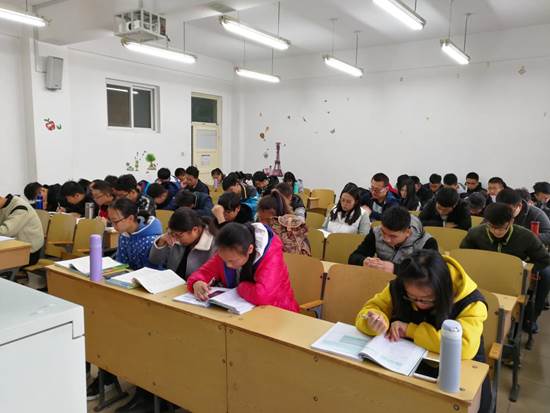 深秋的清晨,气温已低至零下。六点三十分左右,各晨读教室的学生工作人员准备就绪,陆续到达教室的同学有序签到,安静入座并拿出资料书籍大声朗读,他们聚精会神,精神抖擞,琅琅书声充满了整座教室,青春之气激荡回旋。