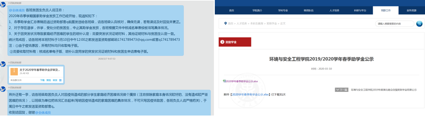 2020年3月7日正式开始本学期的助学金评选工作,由于疫情原因,本次活动的信息收集及核对均在线上进行。亚洲博彩平台排名通过线上平台展开本次活动,活动内容包含了3个方面,分别是统计家庭经济困难学生的增补名单、家庭经济困难学生信息的核对,以及对本次疫情期间导致家庭经济困难的学生进行摸底统计。学生科按照通知要求严格审核发放学生信息,认真核对发放账户,规范编制发放名册,确保名册完整、准确。直至3月10日,所有统计摸底工作完全完成,春季助学金名单在官网公示。