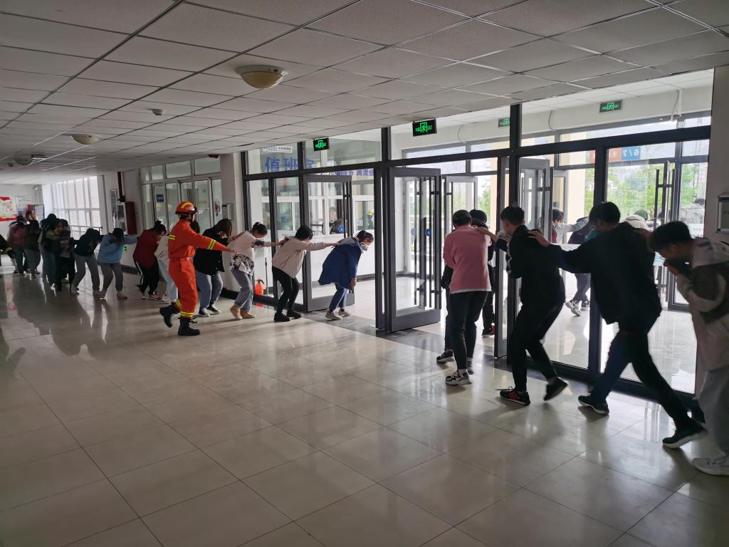 下午16:00点随着警报声的响起,在消防员战士的指导下,同学们井然有序地撤出宿舍楼,并从学生心态、学生思想、逃生方式等方面对本次演习中出现的问题进行点评与指正。