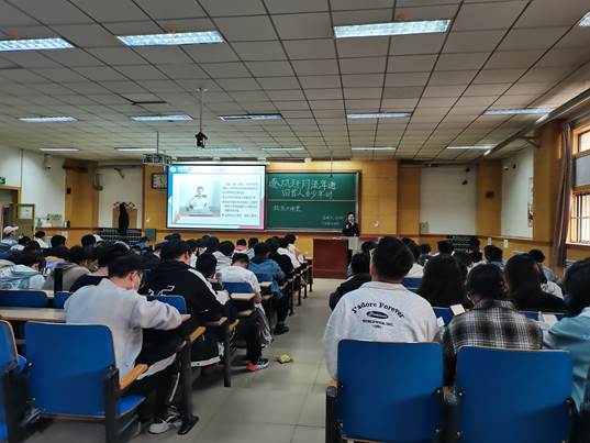 党委副书记张少明向校友刘松颁发校友讲师团聘书,鼓励同学们向校友学习,努力拼搏奋斗。刘松讲述了自己刚参加工作时的感受及经历,给予同学们学习、面试及工作方面的技巧,鼓励同学们要时刻保持积极向上的心态。