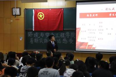 党委副书记张少明,辅导员陈靓、李佳丽、郭士柱,校、院级学生骨干代表,各暑期社会实践团队主要负责人受邀出席活动。