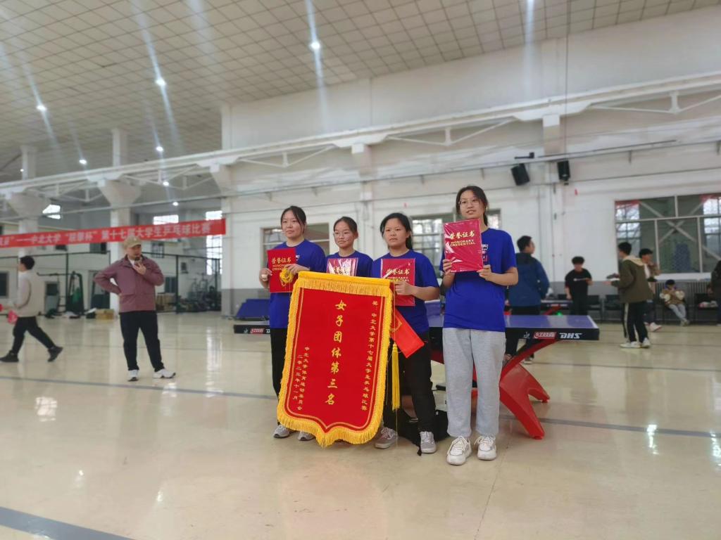 第十七届大学生乒乓球比赛女子团体第三名;排球队获得亚洲博彩平台排名