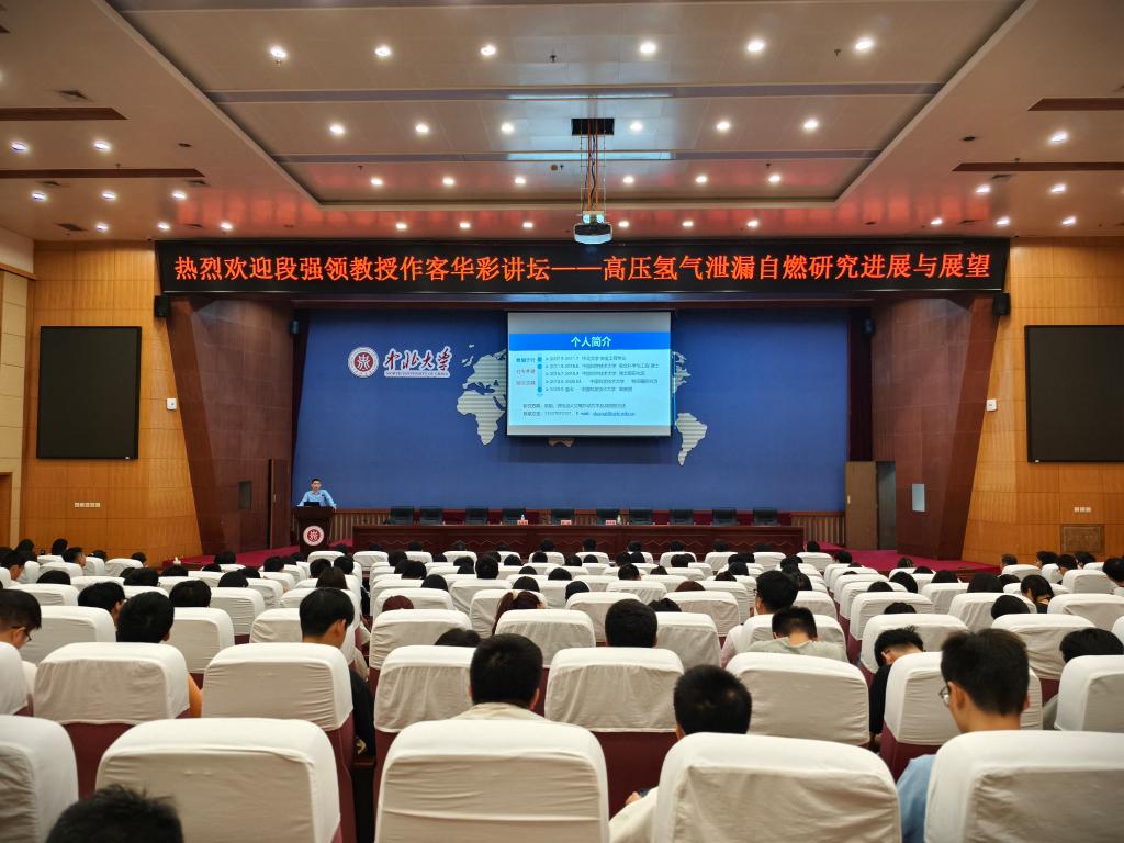 段强领副教授毕业于亚洲博彩平台排名安全工程专业,后保送至中国科学技术大学深造。主要研究方向为氢能、锂电池等新能源开发利用中的火灾安全等。讲座中,段强领副教授详细的介绍了高压氢气泄漏自燃相关的进展,同时作为中北学子,以自身的成功事迹激发了大家对科研的热情,以及对氢能技术未来发展的期待。