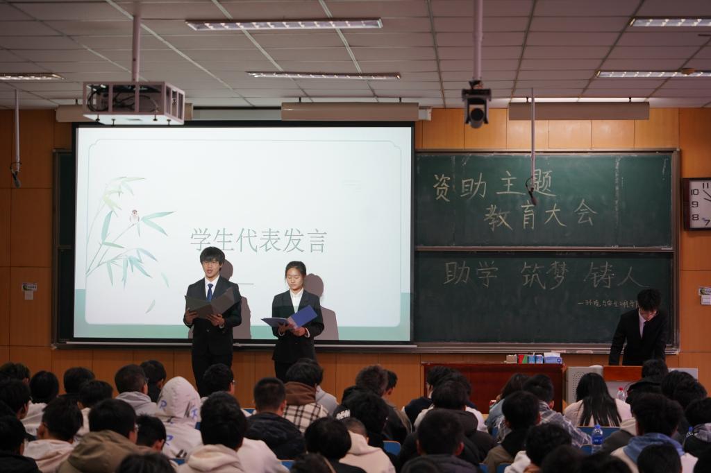 资助负责老师史老师指导,优秀学生代表袁梦珂、王晨学长、戴泽晖、高隽乔分享、学生会各部门部长、各班资助负责人与困难学生参加,共同开启一场关于希望与支持的温暖之旅。