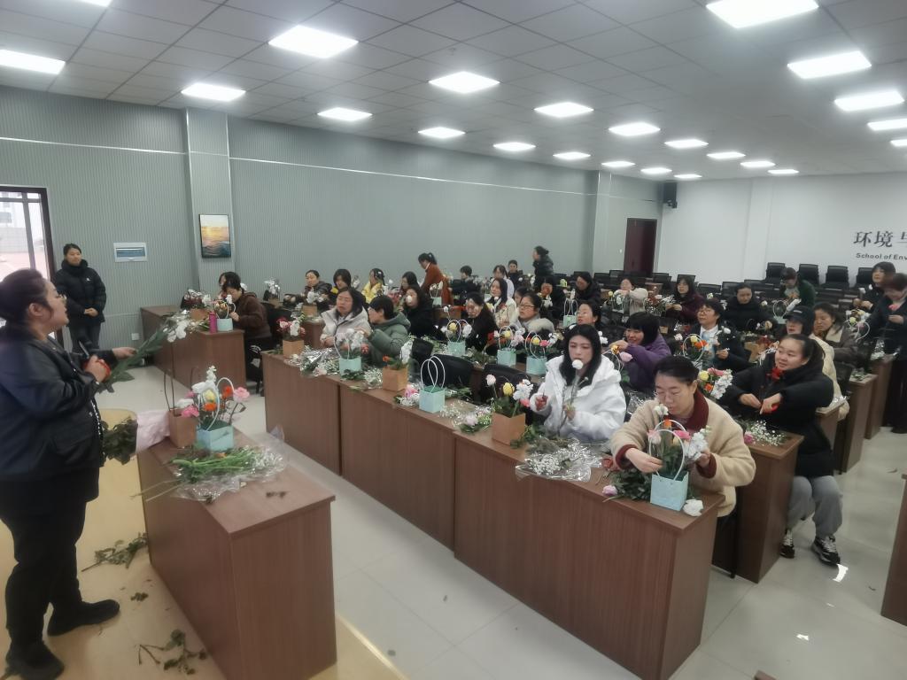 会议室举办了一场温馨而浪漫的插花活动,近50余名女教职工齐聚一堂,共赴这场春日的花艺盛宴。