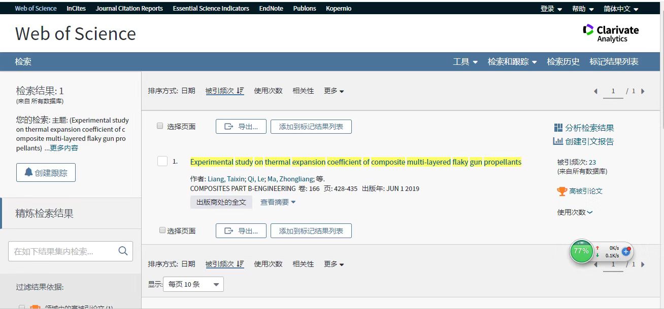 根据基本科学指标数据库(Essential Science Indicators,简称ESI)2019年11月的数据显示,亚洲博彩平台排名青年教师梁泰鑫发表在《Composites Part B: Engineering》期刊、题名为“Experimental study on thermal expansion coefficient of composite multi-layered flaky gun propellants”的论文入选ESI高被引论文,收录时间为2019年9月11日。这是亚洲博彩平台排名首次以第一作者、第一单位发表的学术论文进入ESI高被引论文的行列。
