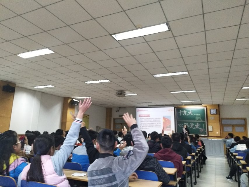 张云霞老师首先将十九大报告分为十三个部分,同学们为张老师简明扼要的表达所吸引。随后,张老师和大家一起回顾过去五年我党的辉煌历程,同学们都感慨厉害了我的国,为我们身为华夏儿女而深感自豪。张老师强调了新时期的主要矛盾,新时期的历史使命,新时期的新征程。张老师结合同学们的实际情况,鼓励同学们在“两个一百年”的历史交汇期,努力学习为实现社会主义现代化和建设富强民主文明和谐美丽的中国而奋斗。最后,张老师借用习近平总书记讲给青年的一段话赠予大家,向同学们提出要求,制定全面学习计划,做到学习贯彻十九大精神全覆盖、长期性,做到学习工作两不误、两促进。张老师表示作为教育者,未来五年,要培养更多优秀的人才,讲好中国故事,发出中国声音。张老师对于十九大的深入解析赢得同学们的热烈掌声,充分地调动了同学们的积极性。