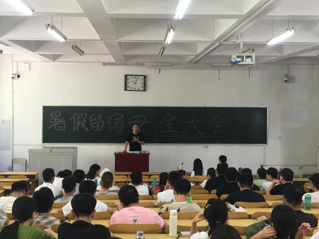 会上,张书记重点强调了暑假学生留宿的安全问题,他提出:暑假留宿学生在留宿期间要注意防火、防盗、防诈骗、防食物中毒、防溺水、防传染病和防交通事故,树立“安全第一”的思想。严禁学生进行户外涉险活动,如去未开发区域攀岩、登山、漂流、游泳等,或私自到涉险地旅游。严禁在汾河水域游泳,假期间,任何单位、班级和个人不得组织学生集体出游。各班班干部、党员要起到模范带头作用,加强对在校学生宿舍的安全教育管理。自觉遵守宿舍正常的生活秩序,在宿舍区禁止做饭、违章用电、抽烟、酗酒、大声喧哗、抛洒杂物、留宿他人、夜不归宿、赌博、参与和组织传销、个人经商、寻衅滋事等。各班要准确掌握学生假期的去向以及留校的学生情况学生离校务必严格执行请销假制度。