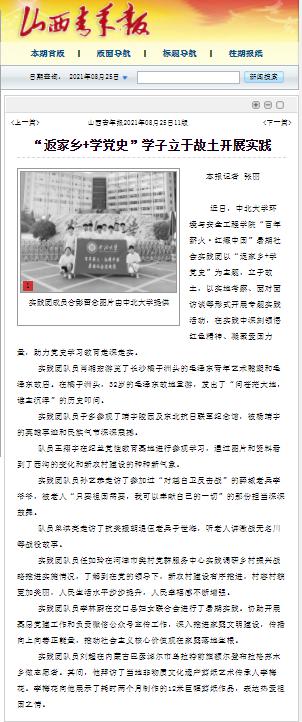 “返家乡+学党史”学子立于故土开展实践--山西青年报2021年08月25日11版:校园--山西青年报 (sxqnb.com.cn)