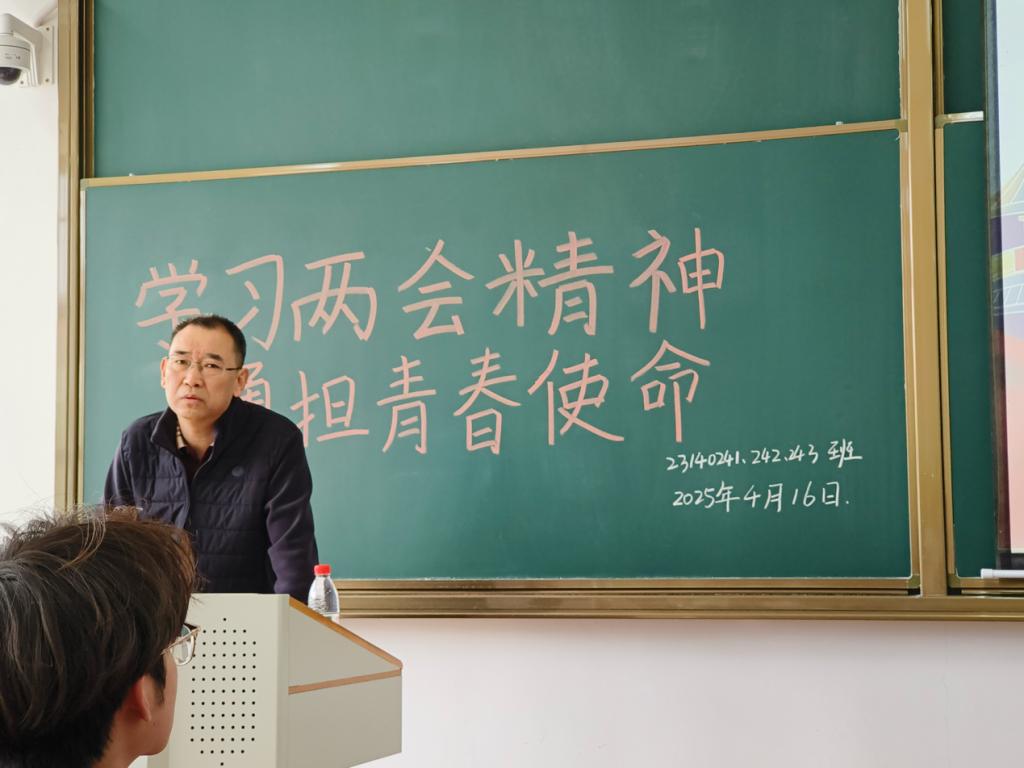 班会伊始,张树海副院长凭借其深厚的专业素养与丰富的阅历,以通俗易懂的方式对两会精神进行了深入剖析。他着重强调,深化两会内容是推动国家持续发展的关键动力,两会改革在国家前行进程中占据着举足轻重的地位。在解读过程中,张院长详细阐述了两会召开的背景,点明其对于国家发展方向把控、民生福祉增进等方面的重大意义,并对未来改革方向作出了精准展望,帮助同学们全方位、深层次理解两会内涵。
